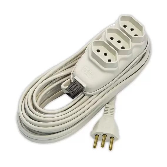 EXTENSAO 10M C/CABO PP CHATO3 VIAS 10A CINZA ILUMI I.17200