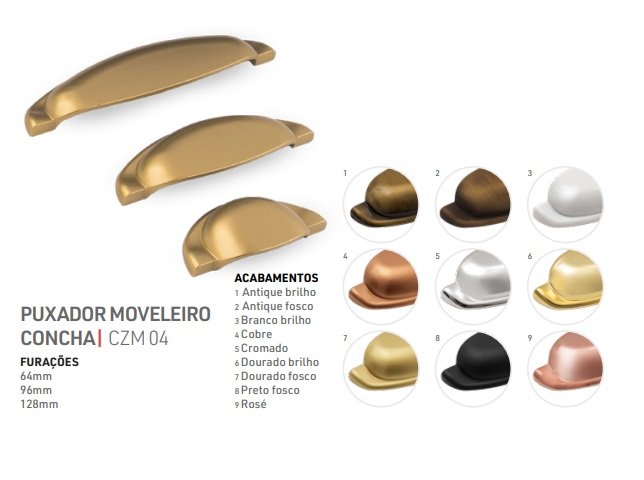 PUXADOR ZAMAC CZM04 64MM CONCHA NOBRE M4 DOURADO BRI AKROSUL