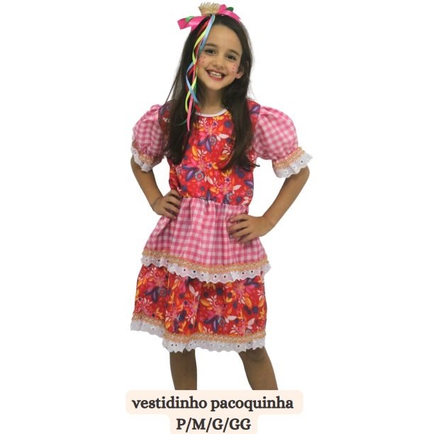 VESTIDO PACOQUINHA VERMELHO E ROSA FJ10 TAMANHO G MERAKI